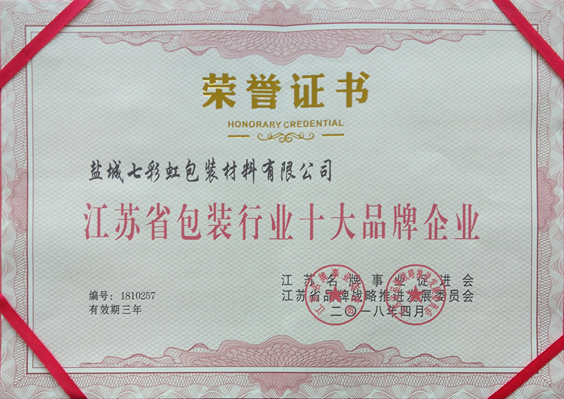 江蘇省包裝行業(yè)十大品牌企業(yè)